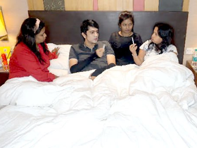 Indian threesome with two couples in a steamy video