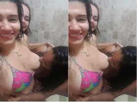 Exclusive video of a Desi Indian girl flaunting her breasts on a video call
