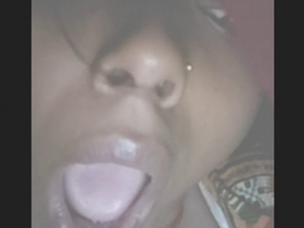 Cute girl sucking on her own breasts in a sensual video