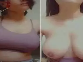 Exclusive cute girl from Assam teases with her boobs and masturbates