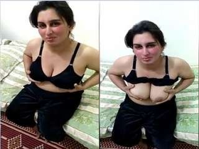 Pakistani auntie squeezes and fucks her big tits
