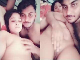 Indian girl gives oral pleasure to her partner's breasts