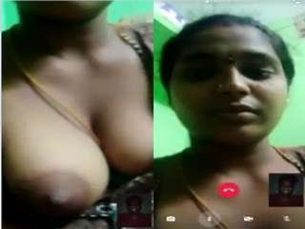 Indian bhabhi flaunts her breasts in a video call to her lover