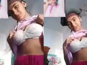 Exclusive video of a cute Indian girl showing off her natural breasts