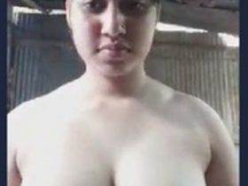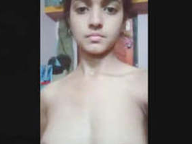 Nude Indian girl exposes her bare breasts in a solo video
