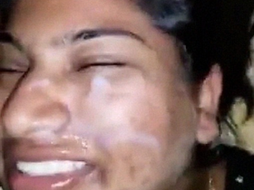 Desi girl receives a facial cumshot in MMS video
