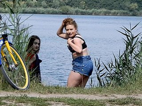 A cute country girl shows off her body in a video