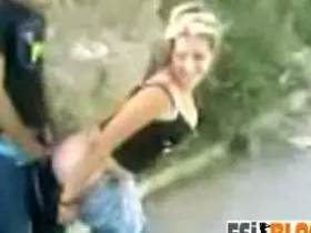 Horny couple enjoys outdoor sex in public place