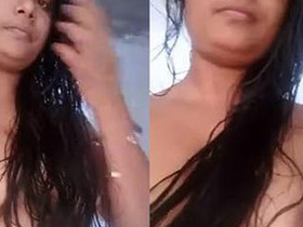 Desi bhabi with long hair bathes in the nude