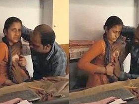 Headmaster indulges in nipple play with teacher in staff room