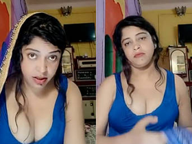 Pakistani woman flaunts her ample bosom in front of the camera