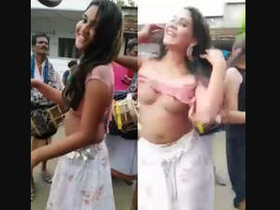 Indian auntie in a petticoat teases in public